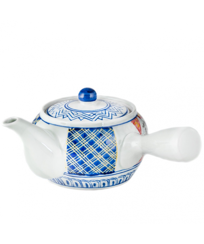 Tetera de cerámica con flores azules estilo japones. 20oz