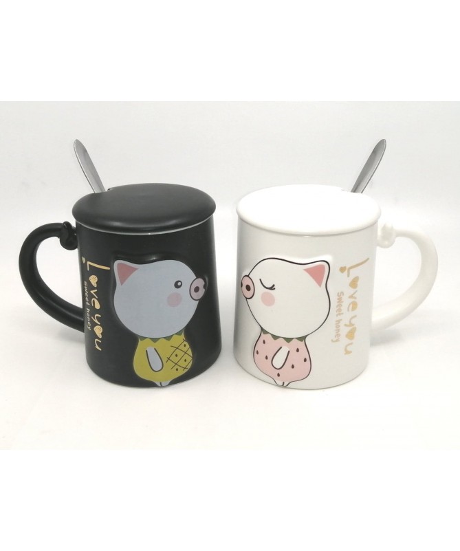 Set 2 Tazas Pig SWEET LOVE Negra y Blanca