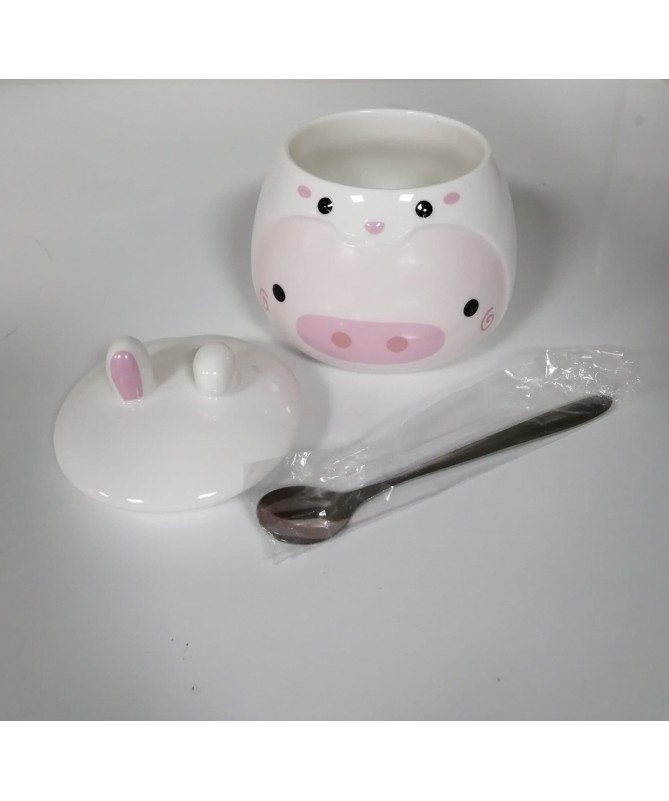Taza de ceramica con diseño de cerdito.
