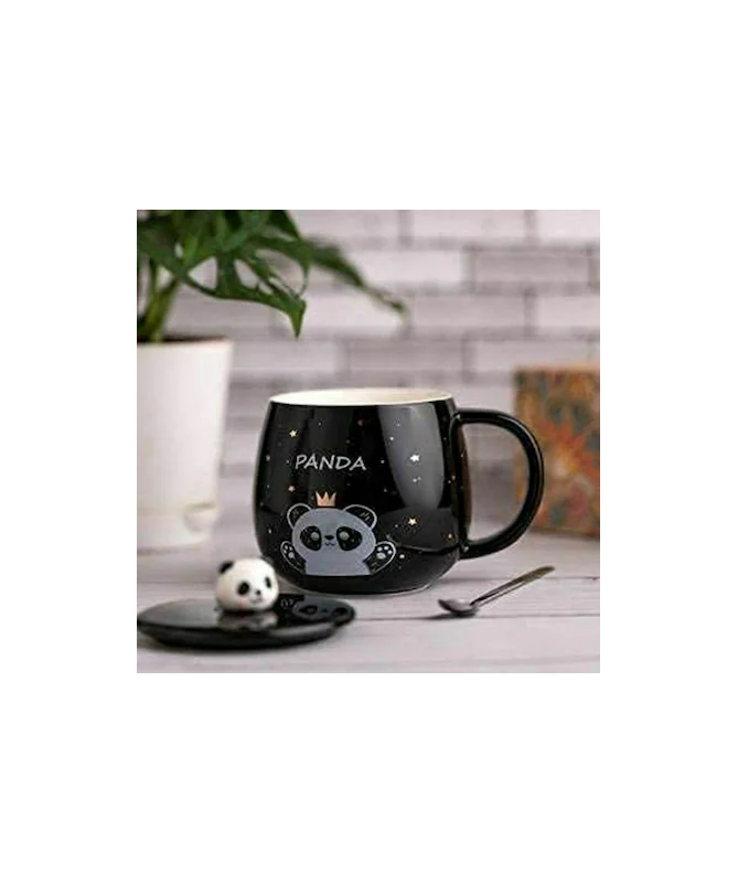 Taza de Cerámica de 12oz color negra con tapa blanca, incluye Tapa Y Cuchara. IMAGEN ILUSTRATIVA, LOS MODELOS PUEDEN VARIAR