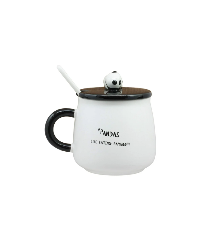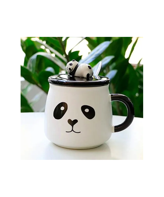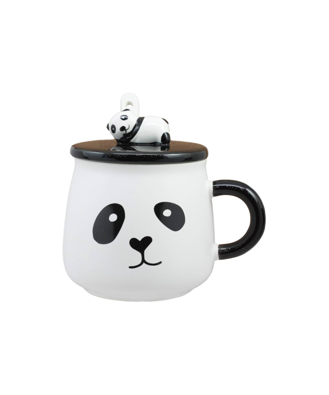 Taza de Cerámica de 14 oz, Diseno de Panda, Incluye Tapa y cuchara.