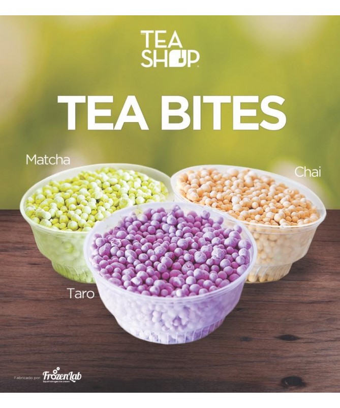 Helado molecular a base de yogurt con sabor a té: Taro, Matcha, Chai y sus combinaciones Taro Frambuesa, Matcha Arándano y Chai Coco. bolsa de dos kilos (18 vasos).