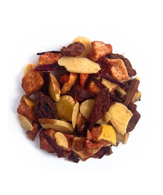 La tisana de crema irlandesa es una mezcla de hierbas y especias que se asemeja en sabor y aroma a la popular bebida alcohólica irlandesa del mismo nombre. Esta infusión sin alcohol está hecha con Almendra, manzana, flor de jamaica, canela y escaramujo.
